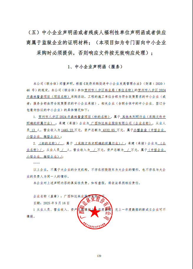 1 | 贺州市八步区2024年森林督查项目 | 贺州市八步区2024年森林督查项目 | 详见竞争性磋商文件 | 详见竞争性磋商文件 | 自接到业主任务通知书之日起 15 日历天内完成并 提交成果文件。 | 详见竞争性磋商文件 |
