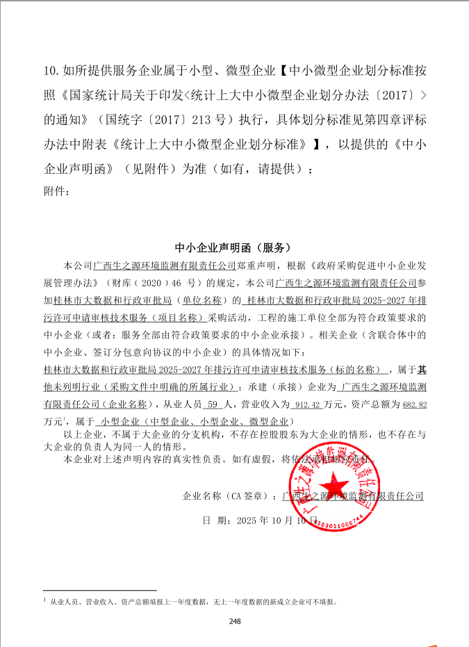 1 | 桂林市大数据和行政审批局2025-2027年排污许可申请审核技术服务 | 桂林市大数据和行政审批局2025-2027年排污许可申请审核技术服务 | 桂林市大数据和行政审批局2025-2027年排污许可申请审核技术服务 | 我公司全部响应招标文件要求 | 自签订合同之日起2年 | 我公司全部响应招标文件要求 |